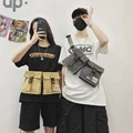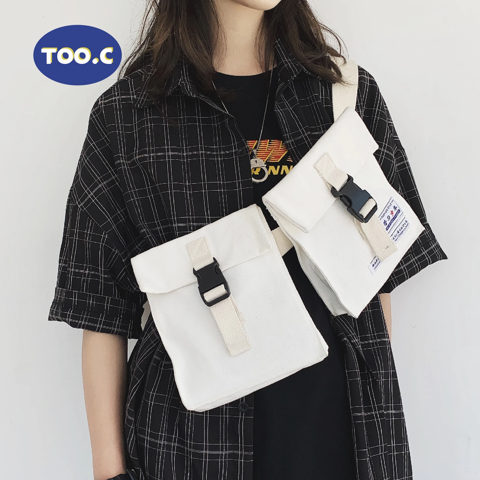 Double pockets Waist Bag Unisex Canvas Big Fanny Packs Streetwear Chest Bags Banana Waist Packs Outdoor Function Crossbody Bag