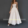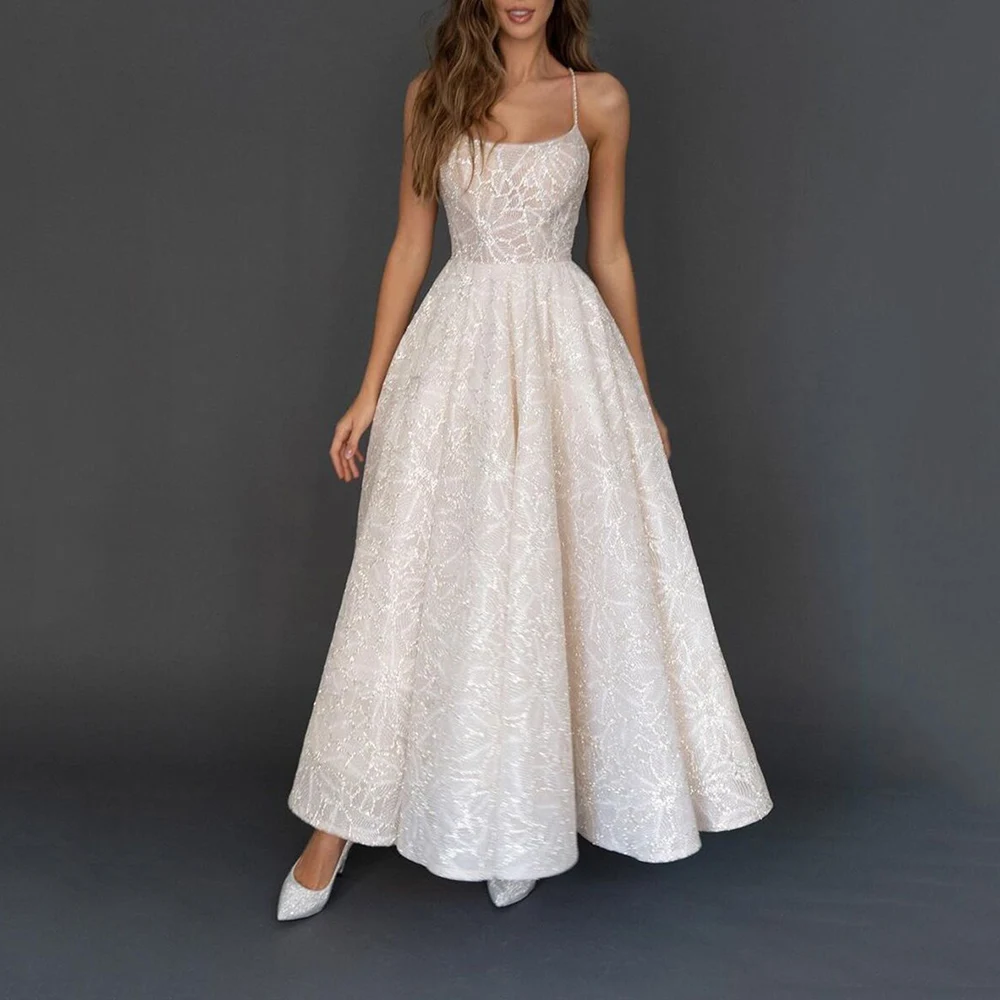 Simple Sparkly Short White A Line Wedding Dress Spaghetti Straps Ankle Length Bridal Gowns Elegant 2021 Luxury Robe De Soiree
