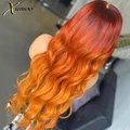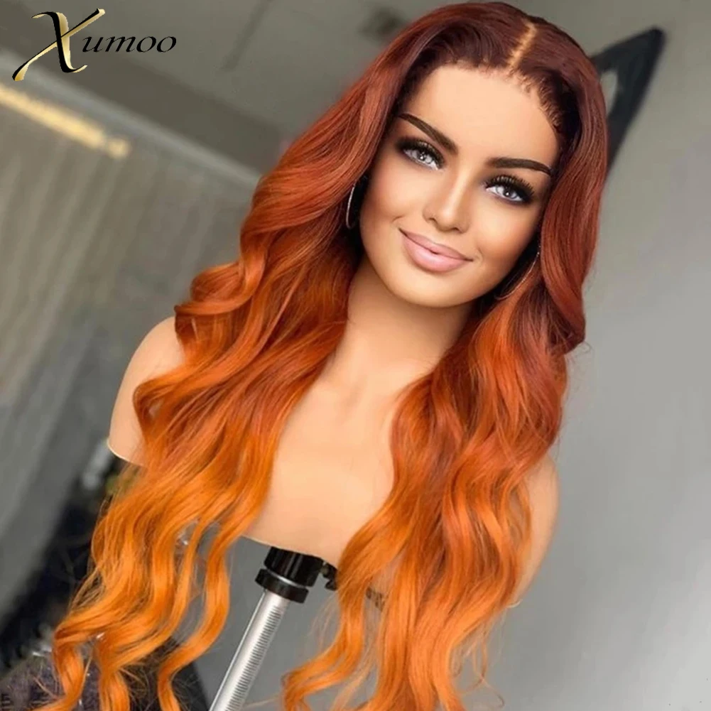 Best XUMOO Ginger Orange Swiss Lace Wigs Ombre Rainbow Colorful Body Wave Brazilian Virgin Human Hair Lace Front Wigs For Cosplay Wig and You will save 31% or US $185.61 today