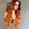 XUMOO Ginger Orange Swiss Lace Wigs Ombre Rainbow Colorful Body Wave Brazilian Virgin Human Hair Lace Front Wigs For Cosplay Wig